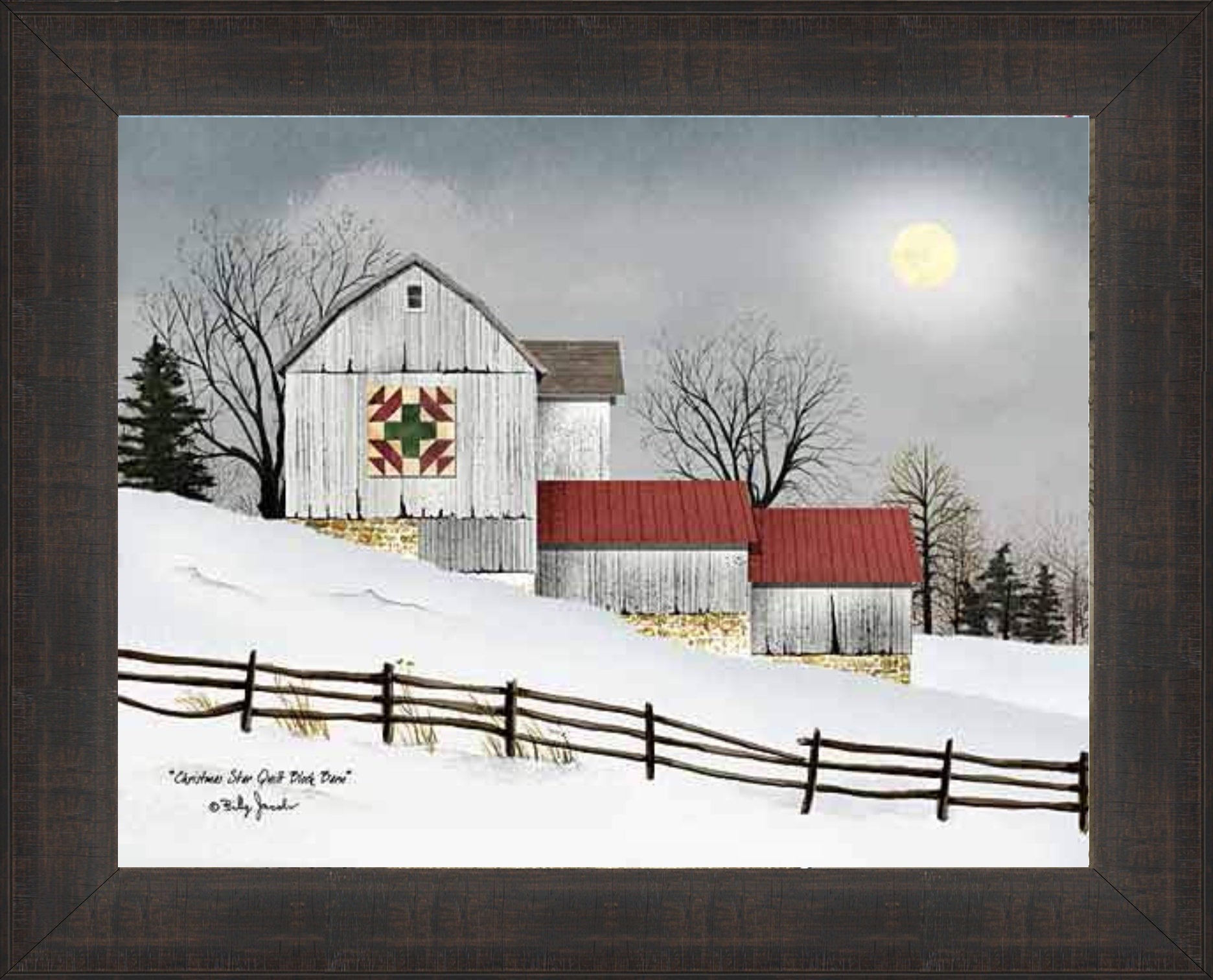 Christmas Star Quilt Block Barn by Billy Jacobs Framed