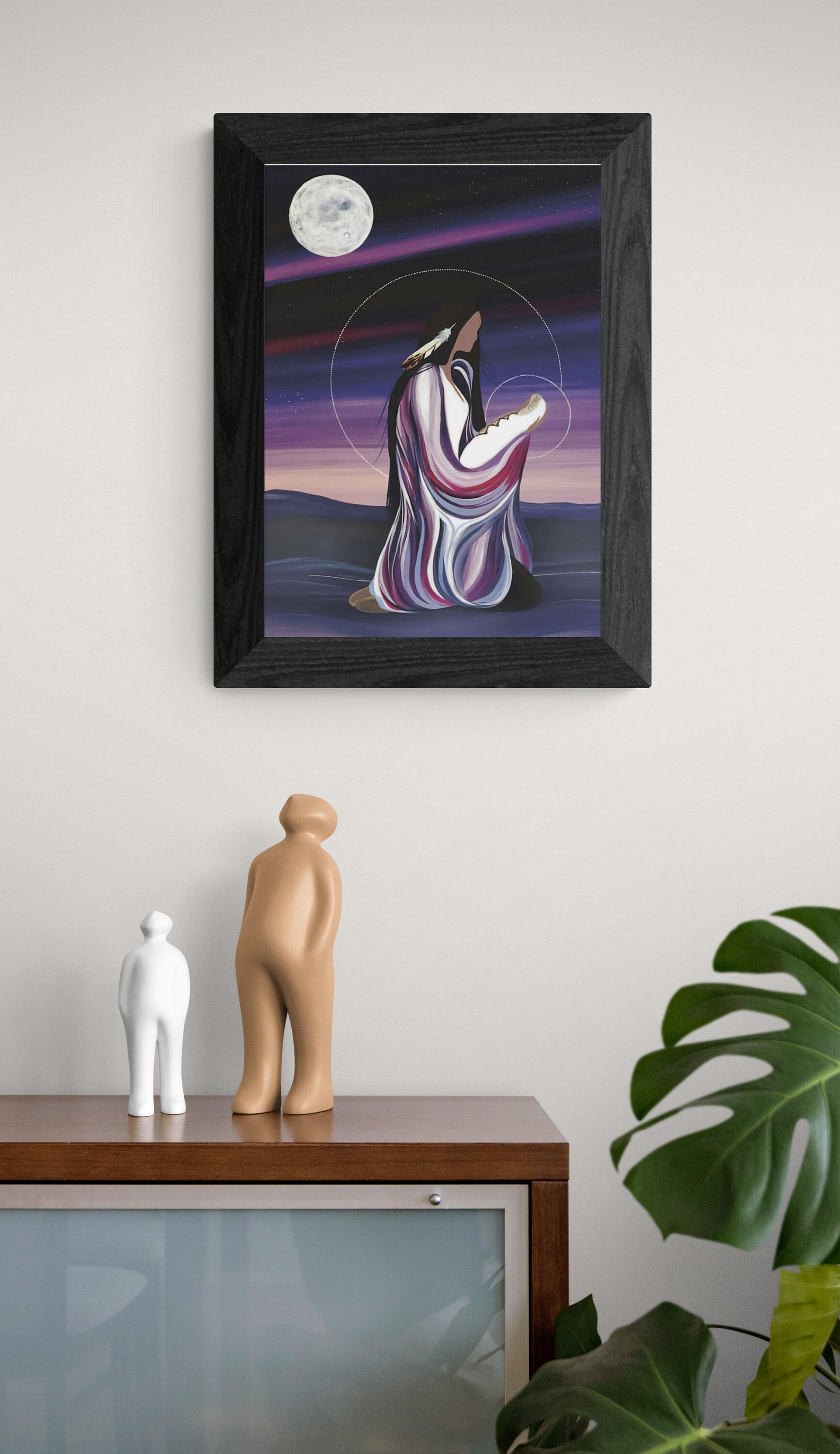 Single white Mat, Acrylic Glazing, 1.25” Espresso Frame, Wire Hanger, and Artist’s Bio on the back