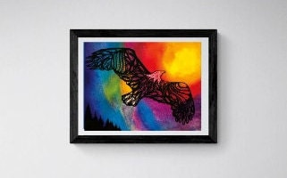 Single white Mat, Acrylic Glazing, 1.25” Espresso Frame, Wire Hanger, and Artist’s Bio on the back